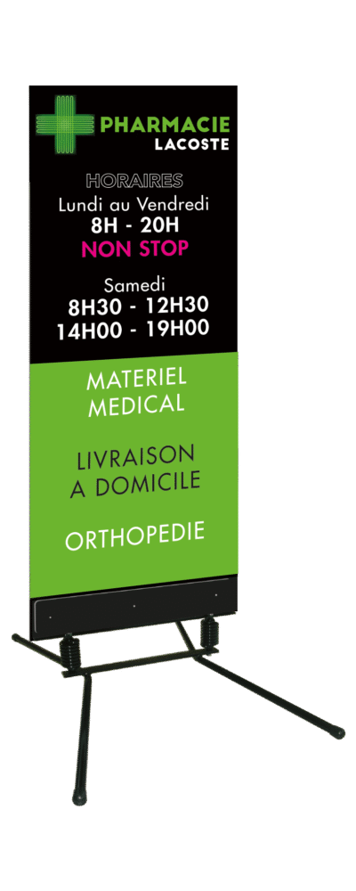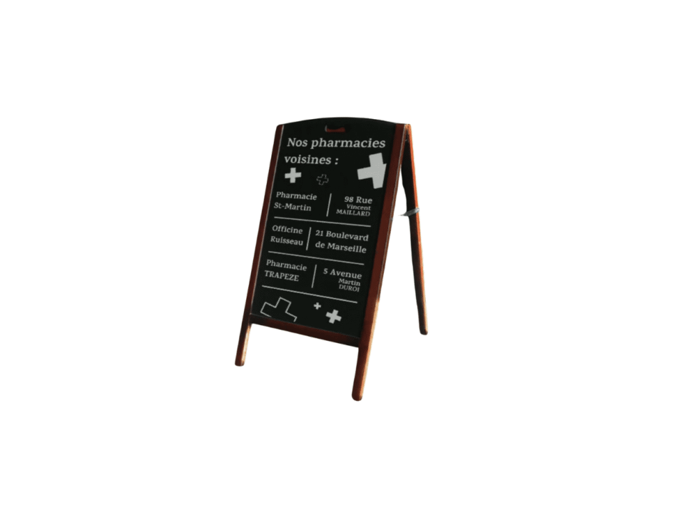 Les chevalets et stop-trottoirs sont la vitrine la plus dynamique de l’officine. Ils doivent capter l’attention, résister aux intempéries et s’intégrer harmonieusement à l’environnement architectural que vous concevez.